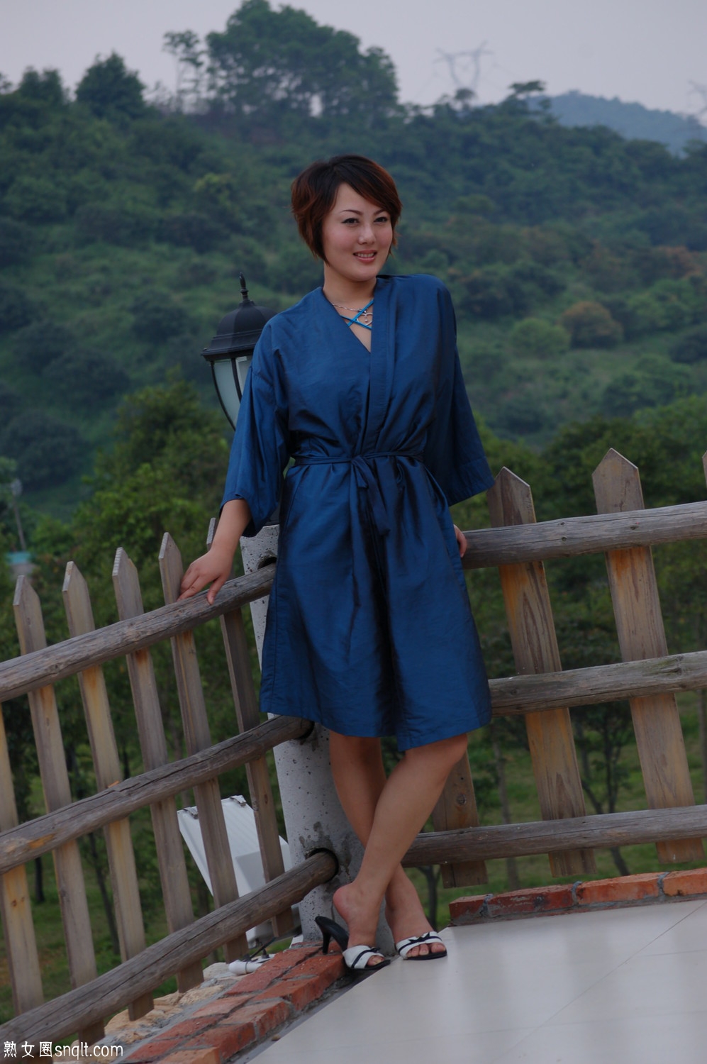 穿睡袍出来拍照,眼神很妩媚啊,这是熟女独有的风情味道